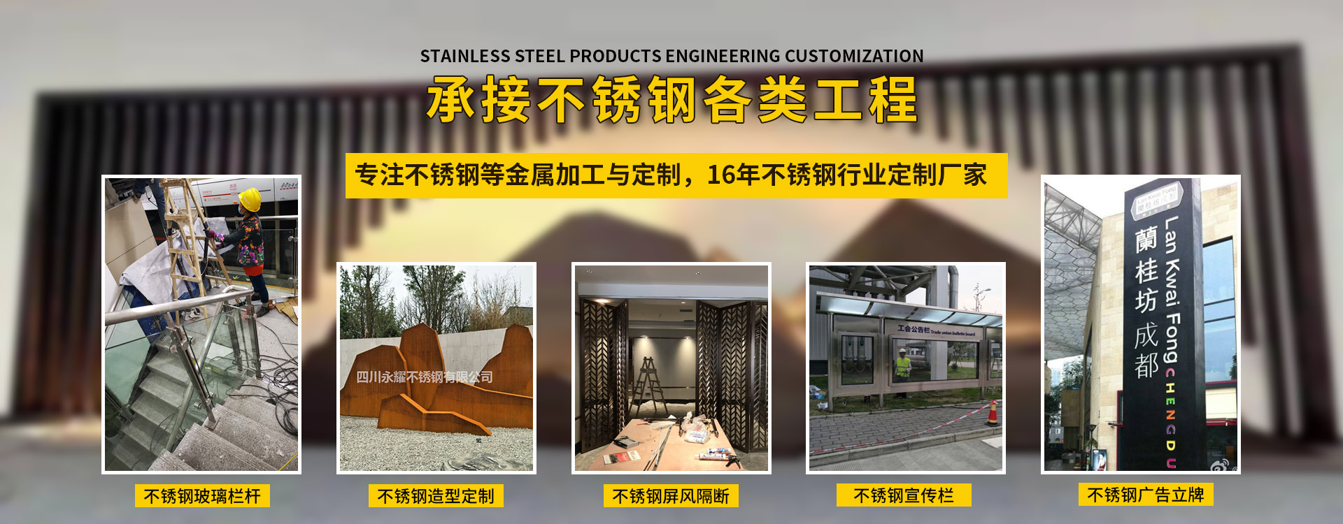 四川永耀不銹鋼有限公司是一家集開發(fā)、設(shè)計、加工、制作、安裝、并承接各種不銹鋼工程為一體的綜合性企業(yè)。多年來一直在專注于不銹鋼等金屬的加工與研發(fā)。在客戶群體中贏得了良好的聲譽,以專業(yè)專注的精神,致辭力于打造良好的產(chǎn)品和企業(yè)形象,對每一產(chǎn)品傾注全力,力爭每個細(xì)節(jié)精細(xì),確保產(chǎn)品具有優(yōu)越的性能,優(yōu)美的外觀及優(yōu)良的品質(zhì),使公司產(chǎn)品深受廣大用戶的親睞。